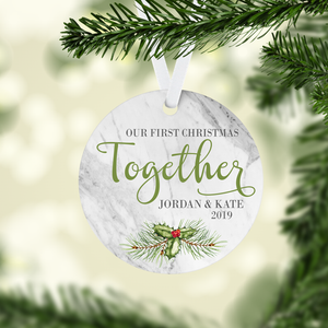 Personalized First Christmas Together Round Aluminum Ornament