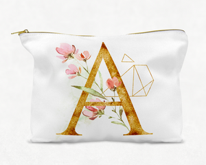 White With Gold Zipper Cosmetic or Small Tote Bag Monogram with Gold Geometric Initial